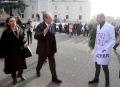 Former Prime Minister Sali Berisha outside the parliament premises. After the decision of the mandates and regulation council to remove Berisha's parliamentary immunity, a vote will be held in the parliament to ratify or not the decision.