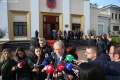 Former Prime Minister Sali Berisha speaking for journalists outside the parliament premises. After the decision of the mandates and regulation council to remove Berisha's parliamentary immunity, a vote will be held in the parliament to ratify or not the decision.