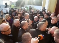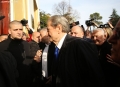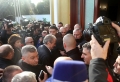 Former Prime Minister Sali Berisha debating with guards outside the parliament premises. After the decision of the mandates and regulation council to remove Berisha's parliamentary immunity, a vote will be held in the parliament to ratify or not the decision.