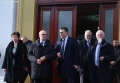 MPs Gazment Bardhi, Xhelal Mziu and Asllani Dogjani outside the parliament premises. After the decision of the mandates and regulation council to remove Berisha's parliamentary immunity, a vote will be held in the parliament to ratify or not the decision.