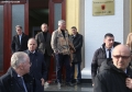 MPs Petrit Vasili, Bledjon Nallbati, Sali Berisha debating with the guards outside the parliament premises. After the decision of the mandates and regulation council to remove Berisha's parliamentary immunity, a vote will be held in the parliament to ratify or not the decision.