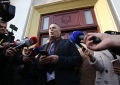 MP Asllan Dogjani speaking to journalists speaking for journalists outside the parliament premises. After the decision of the mandates and regulation council to remove Berisha's parliamentary immunity, a vote will be held in the parliament to ratify or not the decision.