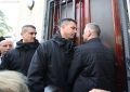 MPs Bledjon Nallbati, Asllan Dogjani debating with the guards outside the parliament premises. After the decision of the mandates and regulation council to remove Berisha's parliamentary immunity, a vote will be held in the parliament to ratify or not the decision.