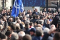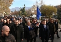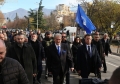 Former prime minister Sali Berisha and his supporters walking towards the headquarters of the democratic party after a rally in front of the parliament, after a parliamentary session. After the tensions in the hall, at the end of the session, it was approved with 75 votes in favor of removing the parliamentary immunity for Berisha. SPAK made a request to impose an arrest security measures on Berisha in relation to the case of the former Partizani complex, since he did not comply with the measure of obligation to appear previously imposed.
