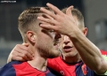 FOOTBALL VLLAZNIA SKENDERBEU - Vllaznia players celebrate scoring a goal during the football match, Vllaznia of Shkodra - Skenderbeu of Korca, 5-0, valid for the Albanian Super League, played at the Loro Borici stadium in Shkodra.