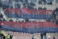 Vllazia fans open banners and ignite smokers during the football match, Vllaznia of Shkodra - Skenderbeu of Korca, 5-0, valid for the Albanian Super League, played at the Loro Borici stadium in Shkodra.