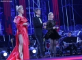 Presenters Krisa Cuashi, Kledi Kadiu and Adriana Matoshi during the final night of the 62nd edition of the Song Festival on Albanian Radio Television, RTSH. The festival also determines the Albanian representative in the most important event of European music, in Eurovision, since 2004, an award which this year was won by the singer Besa Kokedhima.