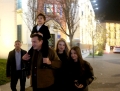 The Mayor of Tirana, Erion Veliaj and his family arrive at Skanderbeg Square during the New Year celebrations in the center of Tirana on January 1.