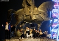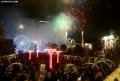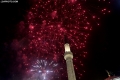 Citizens celebrating and photographing the fireworks under the statue of Skanderbeg in Skanderbeg Square in the center of Tirana at the time of the change of years.
