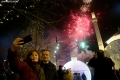Citizens celebrating and taking pictures of the fireworks at Tirana's main square during New Year celebrations in Tirana on January 1.