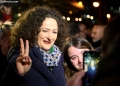 The daughter of former Prime Minister Sali Berisha, Argita Berisha and DP supporters on Mustafa Matohiti street, below Berisha's apartment. Argita Berisha and Berisha's supporters gathered below the apartment in support of the former prime minister after the decision on house arrest for him.