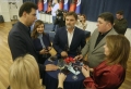 The chairman of the democratic party, Lulzim Basha and MPs Kreshnik Collaku and Enkelejd Alibeaj during a ceremony organized for the 33rd anniversary of the newspaper Rilindja Demokratike, the official newspaper of the democratic party. During it, chairman Basha spoke about the political situation, while he tried not to comment on the measure of house arrest for former Prime Minister Berisha.