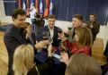 RD'S 33RD ANNIVERSARY - The chairman of the democratic party, Lulzim Basha and MPs Kreshnik Collaku and Enkelejd Alibeaj during a ceremony organized for the 33rd anniversary of the newspaper Rilindja Demokratike, the official newspaper of the democratic party. During it, chairman Basha spoke about the political situation, while he tried not to comment on the measure of house arrest for former Prime Minister Berisha.
