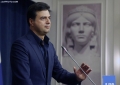 Journalist Namir Lapardhaja during a ceremony organized for the 33rd anniversary of the newspaper Rilindja Demokratike, the official newspaper of the democratic party. During it, chairman Basha spoke about the political situation, while he tried not to comment on the measure of house arrest for former Prime Minister Berisha.