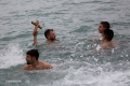Citizen Esi Papajorgji holds the thrown cross after coming out of the Adriatic Sea in Durres on Holy Water Day, which symbolizes the day when Jesus was baptized in the waters of the Jordan River by John the Baptist.