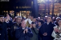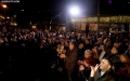 SUPPORTERS OF BERISHA BELOW THE APARTMENT - Former Prime Minister Sali Berisha's lawyer, Genc Gjokutaj, MP Oerd Bylykbashi, Belind Kellici and supporters of Sali Berisha and DP in Mustafa Matohiti street, where Sali Berisha's apartment is located. They have gathered below the apartment in support of the former prime minister after the house arrest decision for him, to listen to him while he speaks from the balcony of the apartment.