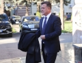 MP Bledjon Nallbati entering the headquarters of the parliament to take part in a meeting of the parliamentary group of the DP. The MPs who support the former prime minister Sali Berisha and the MP Gazment Bardhi were present at the meeting, while due to the security measures, Berisha did not participate.