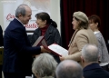 SHUTERIQI AWARD CEREMONY - Researcher Irakli Kocollari, Zana Shuteriqi Prela and Mira Shuteriqi Blushi during the ceremony for the Shuteriqi awards, organized by the Academy of Sciences. The award is given for the best documentary publications on Albanian history, language, culture and identity.
