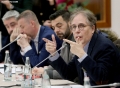 Journalists Denis Dyrnjaja and Carlo Bollino speaking during the meeting of AMA with Albanian media heads on the process of audience measurement. During it, the importance of this process and the various changes that can be made in the relevant organic law were discussed.