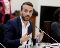 The general director of Vizion Plus, Genc Dulaku speaking during the meeting of AMA with Albanian media heads on the process of audience measurement. During it, the importance of this process and the various changes that can be made in the relevant organic law were discussed.
