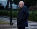 Minister of Defense, Niko Peleshi entering in the parliament building for a parliamentary session. The session marks the Sixth session of the Tenth Legislature of the Albanian parlaiment.