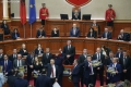 MP Asllan Dogjani and other opposition MPs blocking the floor in a moment of tension during a parliamentary session. The session marks the session of the Sixth and Tenth Legislature of the Assembly of Albania, while the appointments of Blendi Gonxhe as Minister of Economy, Culture and Innovation and Adea Pirdeni as Minister of State for Administration and Anti-Corruption were approved.