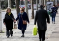 Two elderly women walk on Deshmoret e Kombit Boulevard in Tirana. People are enjoying the high temperatures on this winter day sitting outside the bars and walking in the streets of the city.