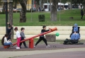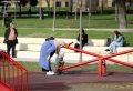 Children play at the playground at the Taiwan park in the center of Tirana. People are enjoying the high temperatures on this winter day sitting outside the bars and walking in the streets of the city.
