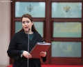 MINISTERS SPEAKING AFTER A GOVERNMENT MEETING - The Minister of Education and Sports, Ogerta Manastirliu, speaking for journalists in front of the Prime Minister's office, after a government meeting, regarding the approved decisions.