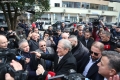 Former Prime Minister Sali Berisha salutes his supporters before entering SPAK premises. He has been summoned to be questioned in connection with the issue of the former Partizani complex. Berisha is suffering the house arrest security measure, as he did not comply with the obligation to appear for the same case.