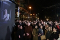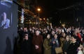 SUPPORTERS BELOW BERISHA'S HOUSE - Supporters of former Prime Minister Sali Berisha watching a statement by the latter through a screen located below Berisha's house on Mustafa Matohiti street in Tirana. He has been summoned to be questioned by SPAK prosecutors regarding the case of the former Partizani complex. Berisha is suffering the house arrest security measure, as he did not comply with the obligation to appear for the same issue. After being questioned, Berisha attacked Prime Minister Edi Rama and SPAK prosecutors.