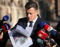 DP MP, Flamur Noka speaking for journalists after a meeting of the DP parliamentary group, with MPs who support former Prime Minister Sali Berisha. Noka has attacked the head of the High Court, Sokol Sadushi, and Prime Minister Edi Rama.