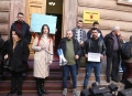 Young people from Lezha protesting in front of the constitutional court against the establishment of the refugee camp in Shengjin. They have demanded the annulment of the agreement between Italy and Albania for the reception of refugees seeking asylum in Italy, in Albania.