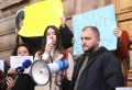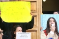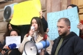 PROTESTS AGAINST THE REFUGEE CAMP - Young people from Lezha protesting in front of the constitutional court against the establishment of the refugee camp in Shengjin. They have demanded the annulment of the agreement between Italy and Albania for the reception of refugees seeking asylum in Italy, in Albania.