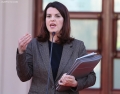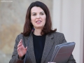 KOCIU AFTER THE GOVERNMENT MEETING - The Minister of Health and Social Protection, Albana Kociu, coming out to speak to journalists in front of the Prime Minister's Office, after a government meeting, regarding the approved decisions.