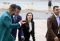 Mayor of Shkoder, Benet Beci and Majlinda Koceku entering the premises of the Palace of Congresses in Tirana, before the Assembly of the Socialist Party. During the assembly, the new ministers were presented as well as the proposals for the Speaker of Parliament (Niko Peleshi).