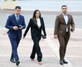 Ulsi Manja and the mayor of Lezha, Pjerin Ndreu entering the premises of the Palace of Congresses in Tirana, before the Assembly of the Socialist Party. During the assembly, the new ministers were presented as well as the proposals for the Speaker of Parliament (Niko Peleshi).