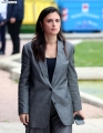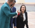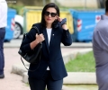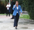 Ogerta Manastarliu entering the premises of the Palace of Congresses in Tirana, before the Assembly of the Socialist Party. During the assembly, the new ministers were presented as well as the proposals for the Speaker of Parliament (Niko Peleshi).