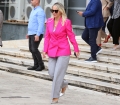 The acting Mayor of Tirana, Anuela Ristani, leaving the premises of the Palace of Congresses, after the SP Assembly. During the assembly, the new ministers were presented as well as the proposals for the Speaker of Parliament (Niko Peleshi). During it, Prime Minister Rama declared that on the occasion of the elections for the Municipality of Tirana, after the arrest of Erion Veliaj, the SP will nominate Ogerta Manastirliu for mayor.