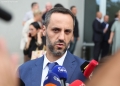 The new Minister of Justice, Besfort Lamallari leaving the premises of the Palace of Congresses, after the SP Assembly. During the assembly, the new ministers were presented as well as the proposals for the Speaker of Parliament (Niko Peleshi). During it, Prime Minister Rama declared that on the occasion of the elections for the Municipality of Tirana, after the arrest of Erion Veliaj, the SP will nominate Ogerta Manastirliu for mayor.