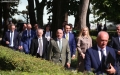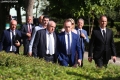 MPs Flamur Noka, Gazment Bardhi, Xhelal Mziu entering the parliament premises for the first session of the new legislature.