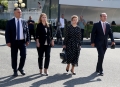 MPs Flamur Noka, Gazment Bardhi, Agron Gjekrmarkaj and Elda Hoti entering the parliament premises for the first session of the new legislature.