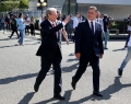 MPs Flamur Noka and Sali Berisha entering the parliament premises for the first session of the new legislature.