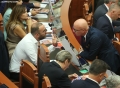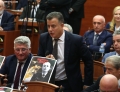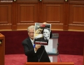 Head of the DP, Sali Berisha holds a letter against the government at a moment of voting during a parliamentary session this afternoon. During the session, a vote was held for the position of Speaker of Parliament, where the Socialist Party's proposal, Niko Peleshi, won.