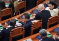 Leader of the DP, Sali Berisha during a parliamentary session this afternoon. During the session, a vote was held for the position of Speaker of Parliament, where the Socialist Party's proposal, Niko Peleshi, won.