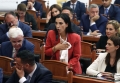 MP Sara Mile during a parliamentary session this afternoon. During the session, a vote was held for the position of Speaker of Parliament, where the Socialist Party's proposal, Niko Peleshi, won.