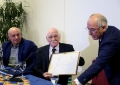 Drejtori i SIGAL, Avni Ponari dhe Aktori Reshat Arbana gjate nje ceremonie te organizuar me rastin e nderimit te aktorit nga Rotary Club Tirana, ne diten e 85 vjetorit te tij. Arbana ka marre nje certifikate mirenjoheje nga klubi.