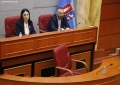 Kryetarja e Keshillit Bashkiak te Tiranes, Megi Fino dhe Sekretari i Keshillit Bashkiak te Tiranes, Behar Zeneli gjate nje mbledhjeje te keshilit bashkiak te Tiranes, ku eshte votuar mbi shkarkimin e kryetarit se Bashkise se Tiranes, Erion Veliaj. Keshilli ka votuar me 50 vota pro shkarkimit te Veliajt, i cili qendron ne paraburgim qe brej dates 10 shkurt.