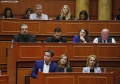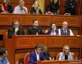 Anetaret e keshillit bashkiak gjate nje mbledhjeje te keshilit bashkiak te Tiranes, ku eshte votuar mbi shkarkimin e kryetarit se Bashkise se Tiranes, Erion Veliaj. Keshilli ka votuar me 50 vota pro shkarkimit te Veliajt, i cili qendron ne paraburgim qe brej dates 10 shkurt.