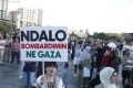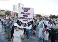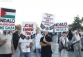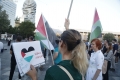 Qytetare me pankarta duke protestuar ne mbrojtje te popullit palestinez ne sheshin Skenderbej. Protesta eshte organizuar nga Forumi Mysliman i Shqiperise